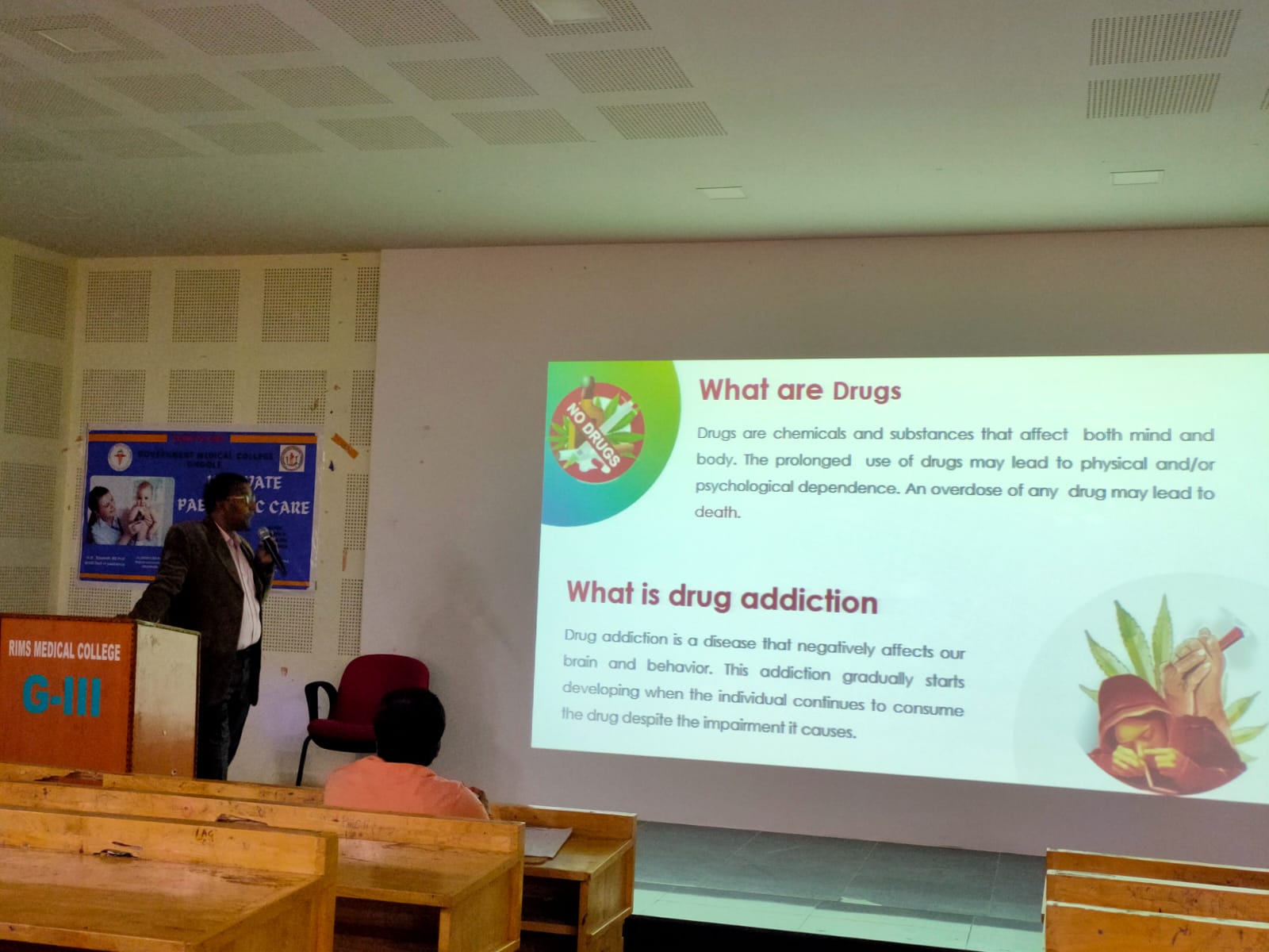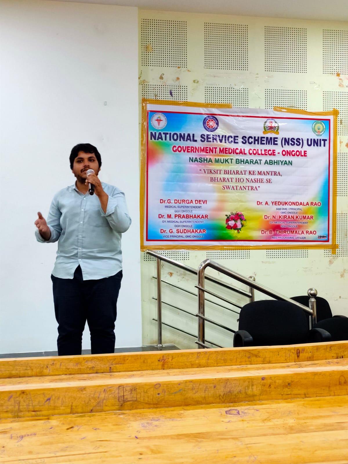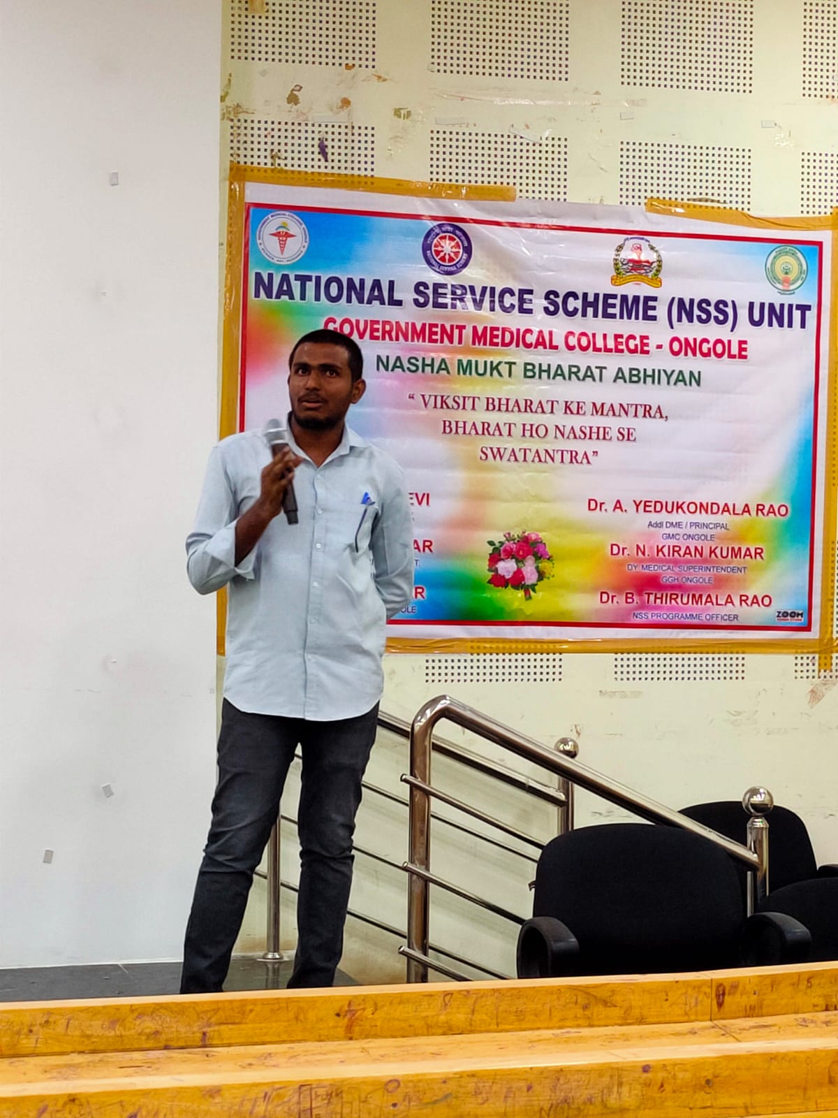 NSS Program Officer, Government medical college, Ongole – Dr.B.Thirumala Rao pointed out that drug addiction is not only a problem at district level but also at state, country and global level. Youth and adults of a country contributing the 65% of the population and they are playing a major role in academic growth of a country. Substance abuse among these leads to decreased performance in their respective fields overall, it impacts the economic growth of a country. Substance abuse is more dangerous than the corona virus impact in a country. Substance abuse is catching the mindset of the people and altering their behaviour permanently and it is like a mind game playing by youth & adults of this country. There are 3 types of quotients, for a human. One is IQ and is Emotional quotient and third is Spiritual quotient. Now a day’s youth studying in professional medical, engineering colleges and adults involved in skilled works, they are well versed with IQ, but these generations are not having required emotional quotient. Anger, stress, frustration, difficulties, anxiety, depression, emotions are not bearing by present generations and not finding solutions and they have to knows how to control their emotions.